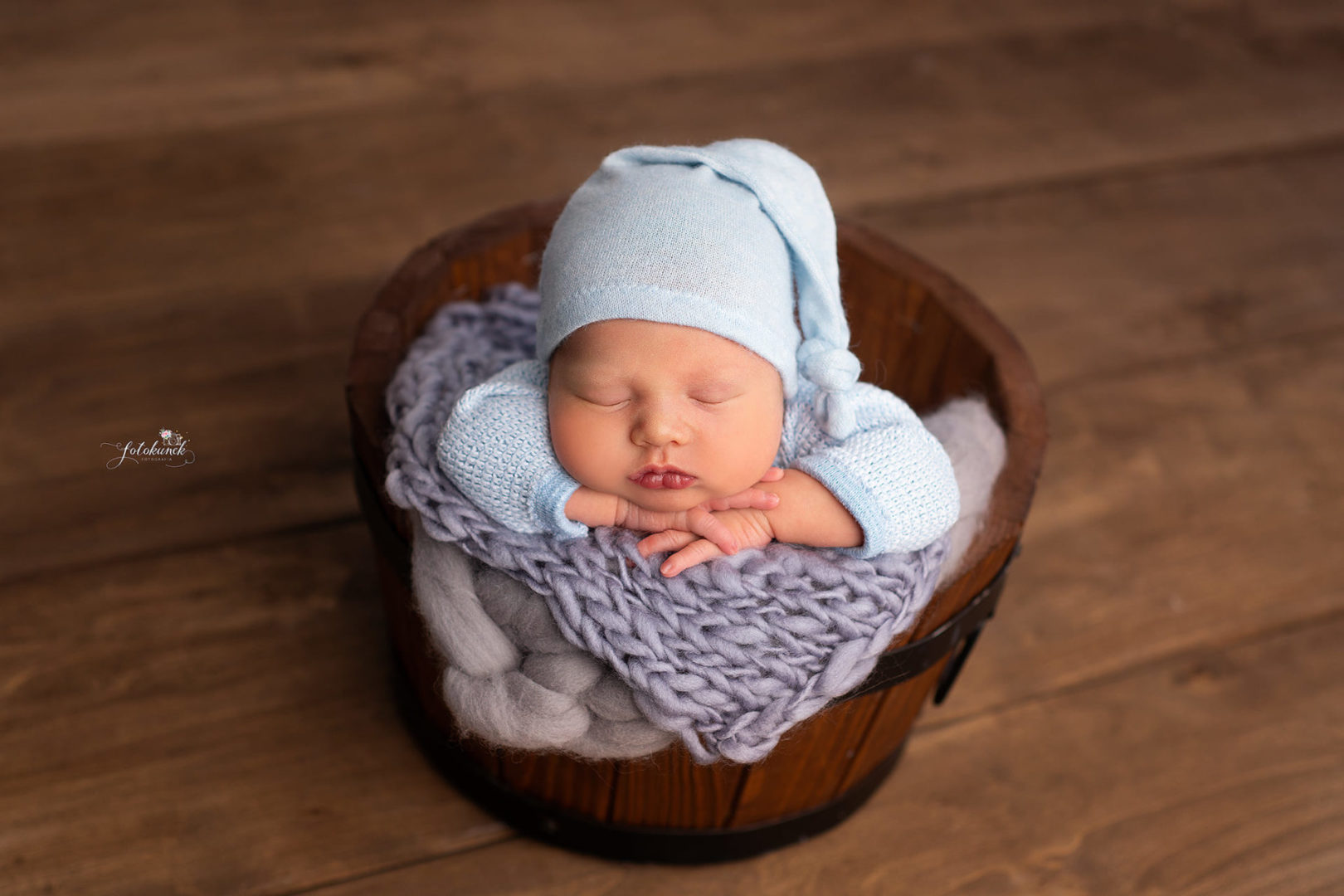 Sesja noworodkowe wykonujemy w pierwszych dniach życia dziecka. Najlepsze efekty uzyskujemy przed 14 dniem życia. Dziecko pamięta jeszcze pozycje z brzuszka, dużo śpi i daje się pięknie modelować. To ono dyktuje warunki podczas sesji. Sesja noworodkowa może trwać nawet 4 godziny. W tym czasie wielokrotnie karmimy, usypiamy i przebieramy. W studio panuje spokój, cisza. Towarzyszą nam dźwięki natury jak deszcz, watr, woda, identyczny z tymi, które słyszy dziecko w brzuszku Mamy zanim przyjdzie na świat. Stwarzamy warunki jak najbardziej zbliżone do tych z okresu brzuszkowego.